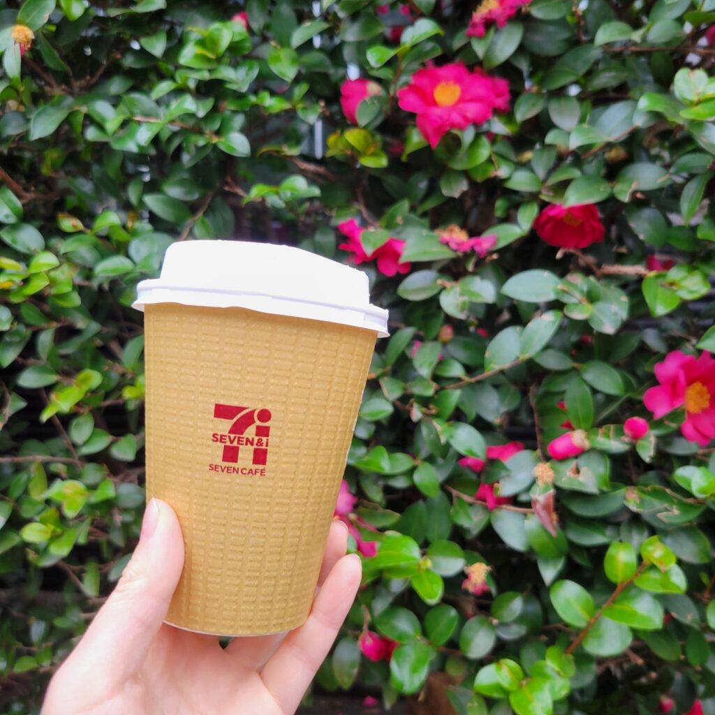 どなたの家か知らない植木を背景にコンビニのカップと写真をとって、なんだかちょっと映えてるかも?って思って、