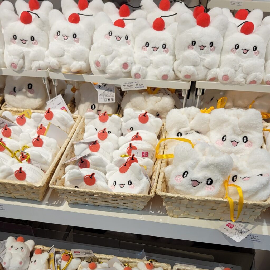 現在は新宿のPOPUPでお迎えしたぬいぐるみの他に「しろふわおひるねシリーズ」のマスコット、LINEスタンプの3点を愛用中。